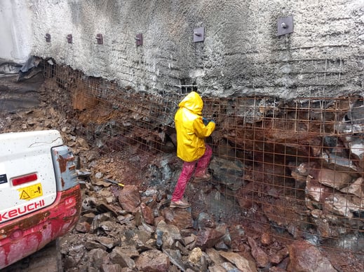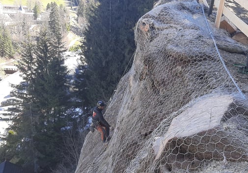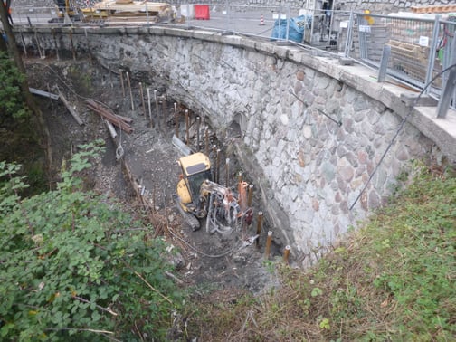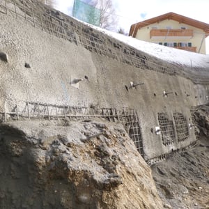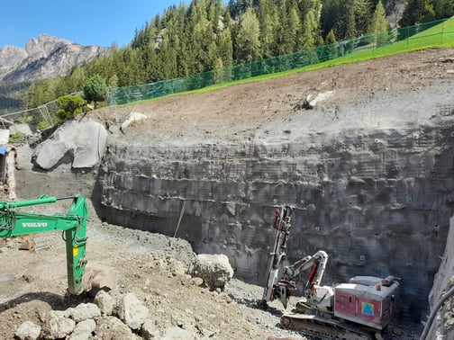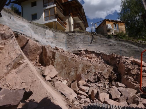 Absicherung einer Felswand in St. Ulrich, im Rahmen der hydrogeologischen Kompatibilitätsprüfung für ein Bauvorhaben innerhalb einer Gefahrenzone