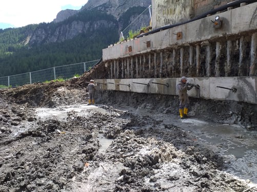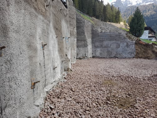 Neubau eines 4-stöckigen Residences in Wolkenstein, mit permanenter Böschungssicherung aus Großbohrpfählen